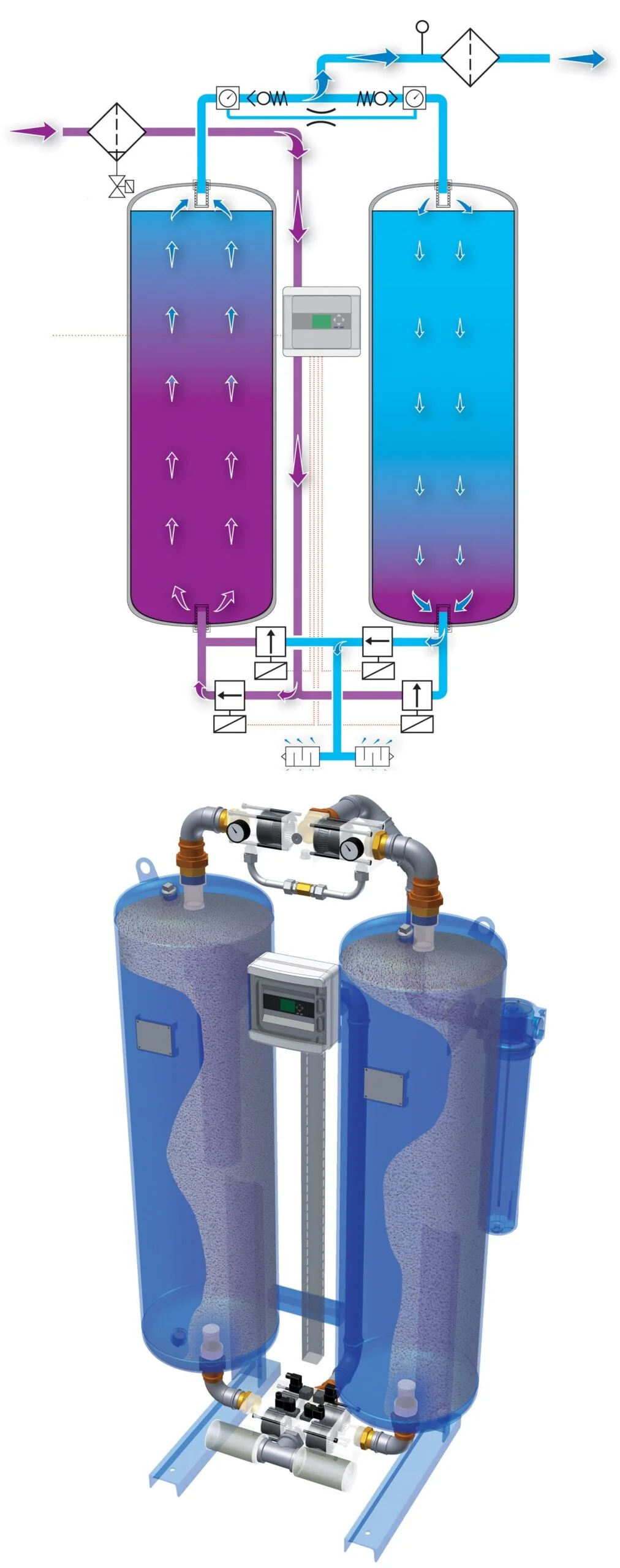 Basınçlı ve rejenerasyonlu kurutucular gibi sistemlerde, havadaki nemi ve bazı gazları adsorbe ederek suyun sistem içerisinde çiğlenme noktasına ulaşmasını engeller.